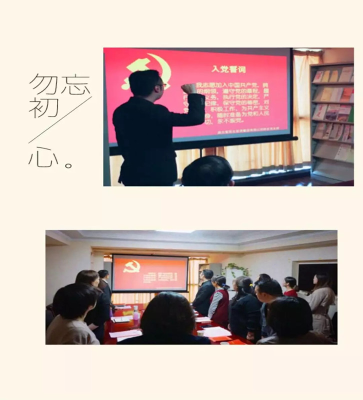 在國歌聲中,本次主題活動正式開始。為了增強(qiáng)黨員的身份意識,本次黨日活動對新吸納的4名預(yù)備黨員和1名預(yù)備轉(zhuǎn)正的黨員舉行了戴黨徽儀式并面對黨旗宣誓。全體黨員集體誦讀《黨章》第七章節(jié)“黨的紀(jì)律”,聆聽集團(tuán)公司黨總支委員張光榮同志講授題為《加強(qiáng)文化自信,做堅(jiān)定的馬克思主義無神論者》,還集中學(xué)習(xí)《共產(chǎn)黨員絕不能信仰宗教》及《加強(qiáng)和改進(jìn)意識形態(tài)工作》的相關(guān)論述,現(xiàn)場繳納本月黨費(fèi)。