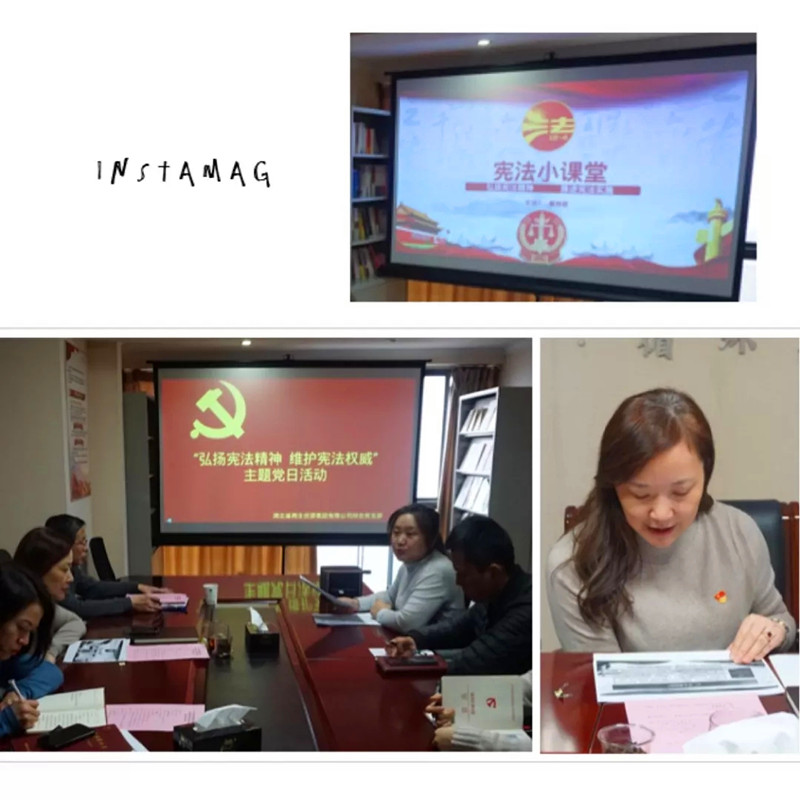 為認(rèn)真落實(shí)《省供銷社2018年“12.4”國家憲法日系列法治宣傳活動(dòng)方案》,湖北省再生資源集團(tuán)將“12.4”法制宣傳教育工作作為本月重點(diǎn)工作,積極部署安排,注重落實(shí)。1220日在公司17樓會(huì)議室組織全體黨員和入黨積極分子開展了以“弘揚(yáng)憲法精神  維護(hù)憲法權(quán)威”為主題的黨員活動(dòng),并由公司黨總支書記熊艷君同志開設(shè)憲法小課堂,普及憲法知識,在公司內(nèi)部營造濃厚憲法學(xué)習(xí)宣傳氛圍。