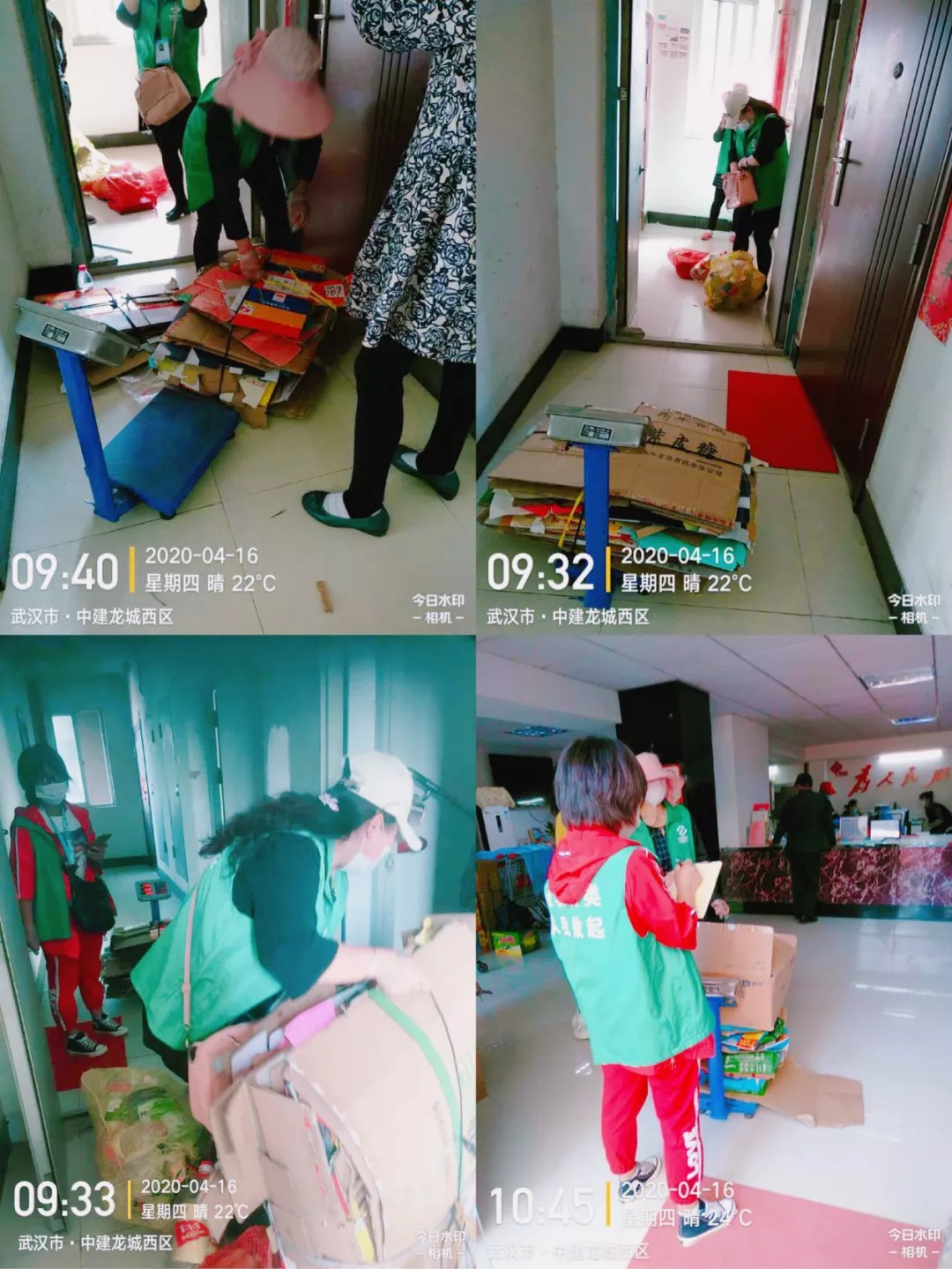 下圖為垃圾分類工作人員們正在緊張忙碌地對(duì)居民們的廢紙板、塑料瓶等進(jìn)行一一稱重。