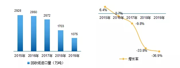 1 2015-2019年我國廢紙進(jìn)口量及增長速度