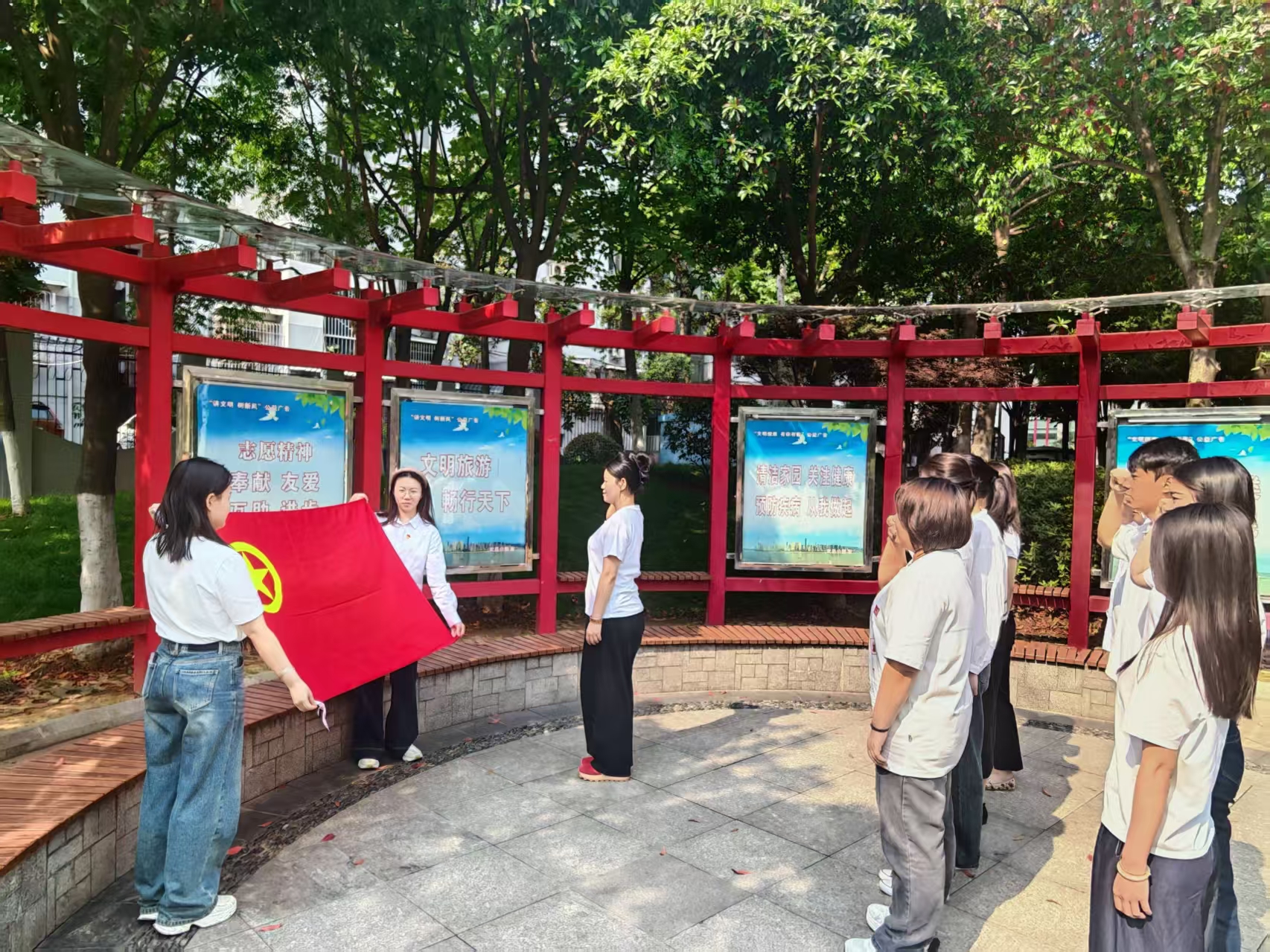 活動伊始,青年團(tuán)員們來到廉政文化長廊,在團(tuán)旗下重溫入團(tuán)誓詞,鏗鏘有力的誓詞回蕩在每一位青年心中,堅(jiān)定了他們?nèi)雸F(tuán)的決心和信念,以此鞭策和激勵自己。